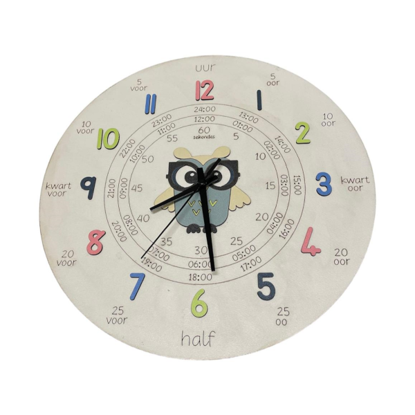 Owl Design Wall Clock - Teaching Time with Automatic Dial Pointers