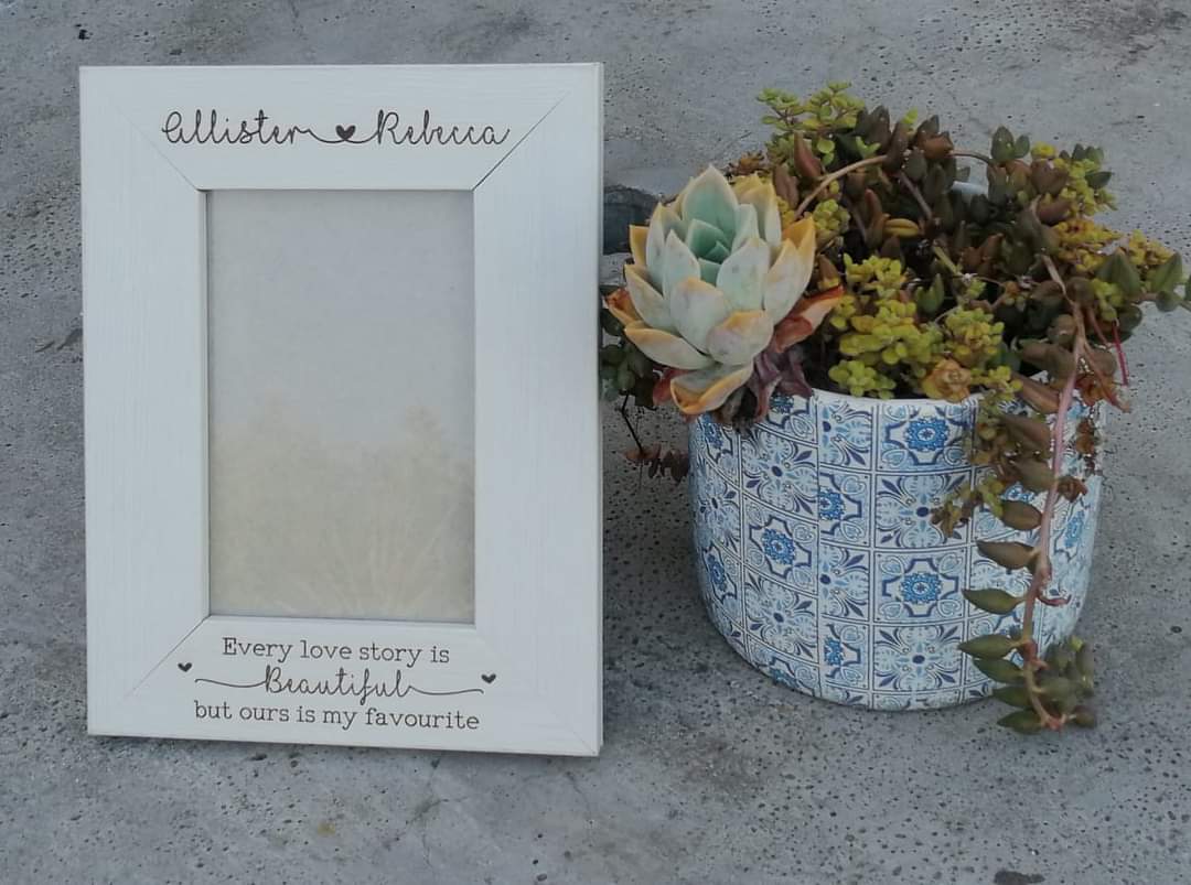 Introducing our Personalized White Engraved Photo Frame - the perfect addition to your home or a thoughtful gift. This sleek and elegant frame is fully customizable with precision engraving, making it a unique keepsake for your most cherished memories. Add a touch of personalization to your decor or surprise someone special with this heartfelt gift.